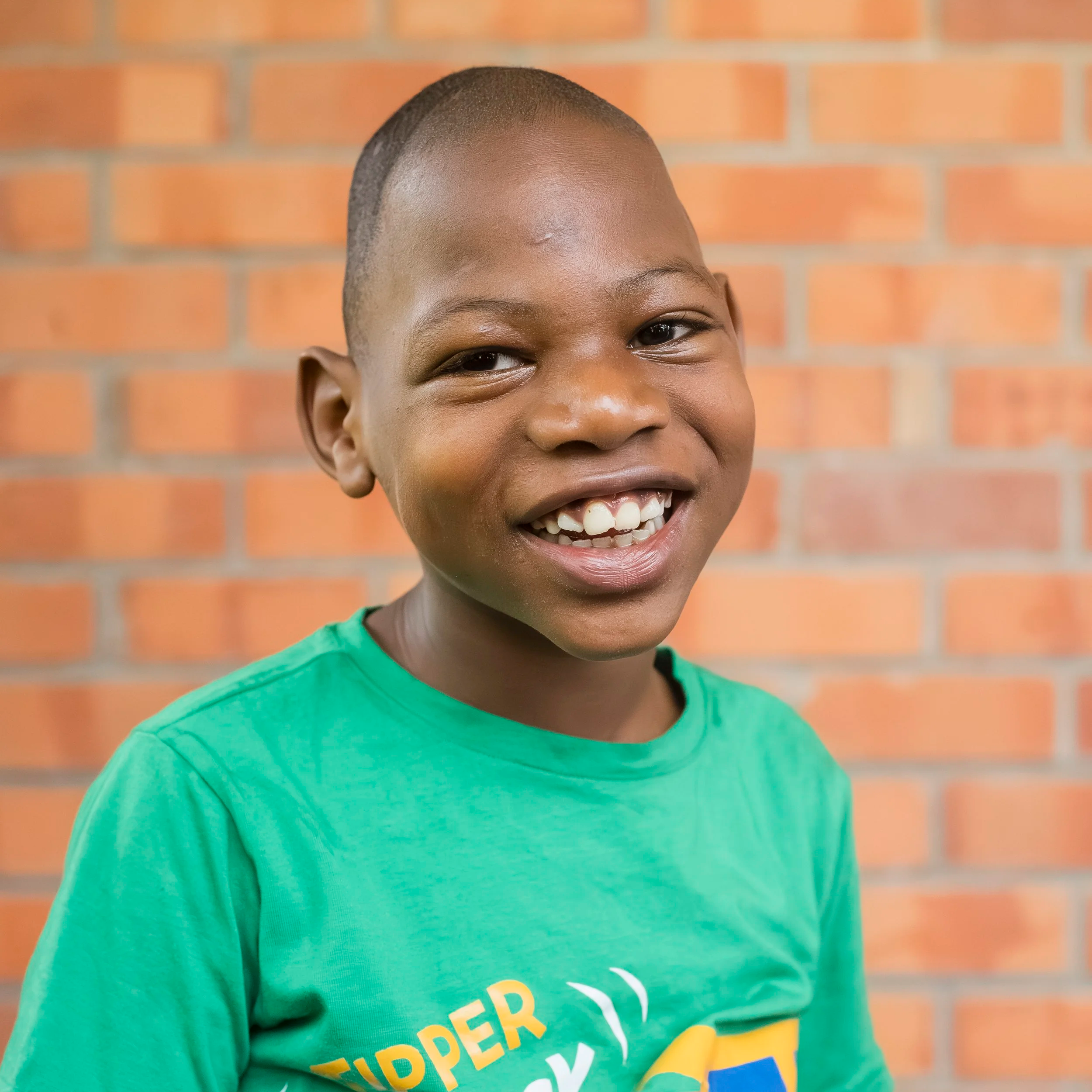 Godwin has quickly stolen the hearts of everyone here! He is a very happy boy who is always on the move — running, hopping, and spinning around the room. He is very friendly and talks nonstop. We love hearing his sweet giggle fill our home all day long!